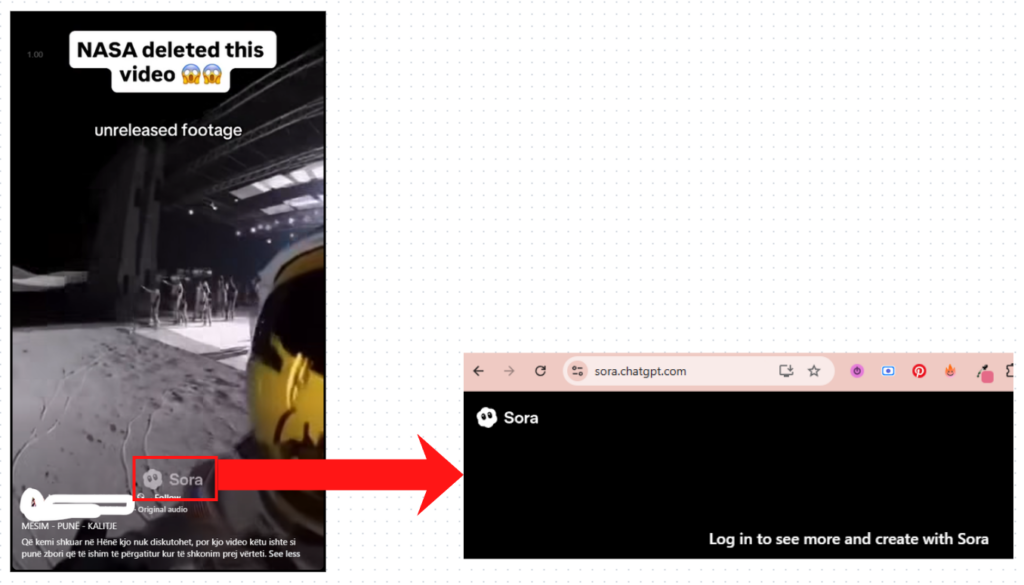 Një tregues kryesor është logo e Sora, modeli tekst-në-video i Open AI. Duke përdorur inteligjencën artificiale, modeli gjeneron videoklipe të shkurtra bazuar në udhëzime të dhëna nga përdoruesi.