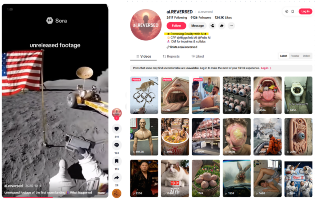 Me anë të motorrit të kërkimit pamor Google Lens, Faktoje gjeti se video origjinale ishte postuar në TikTok në tetor 2025 nga një llogari me emrin @ai.reversed, e cila, sipas vetëpërshkrimit, “përmbys realitetin me AI,” dhe, siç mund të pritej, poston ekskluzivisht video të gjeneruara me AI.
