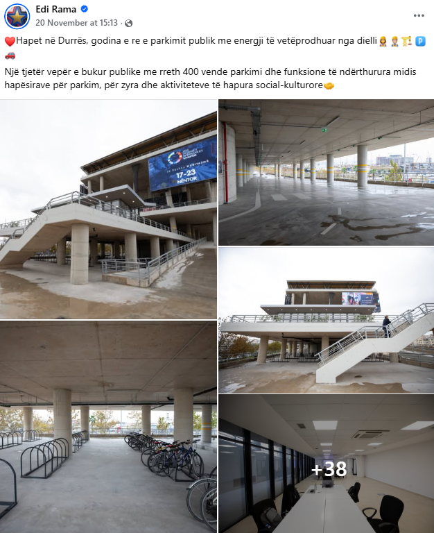 Rama e prezantoi objektin si një strukturë moderne me rreth 400 vende parkimi, energji të vetëprodhuar nga panelet diellore, hapësira për biçikleta, ambiente për zyra dhe hapësira social-kulturore.