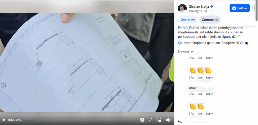 Një projekt pritash malore përgjatë Gurrës së Shushicës, që u postua nga kryebashkiaku Llatja në Janar 2025, duket se nuk përfshinte pastrimin e premtuar të Gurrës.