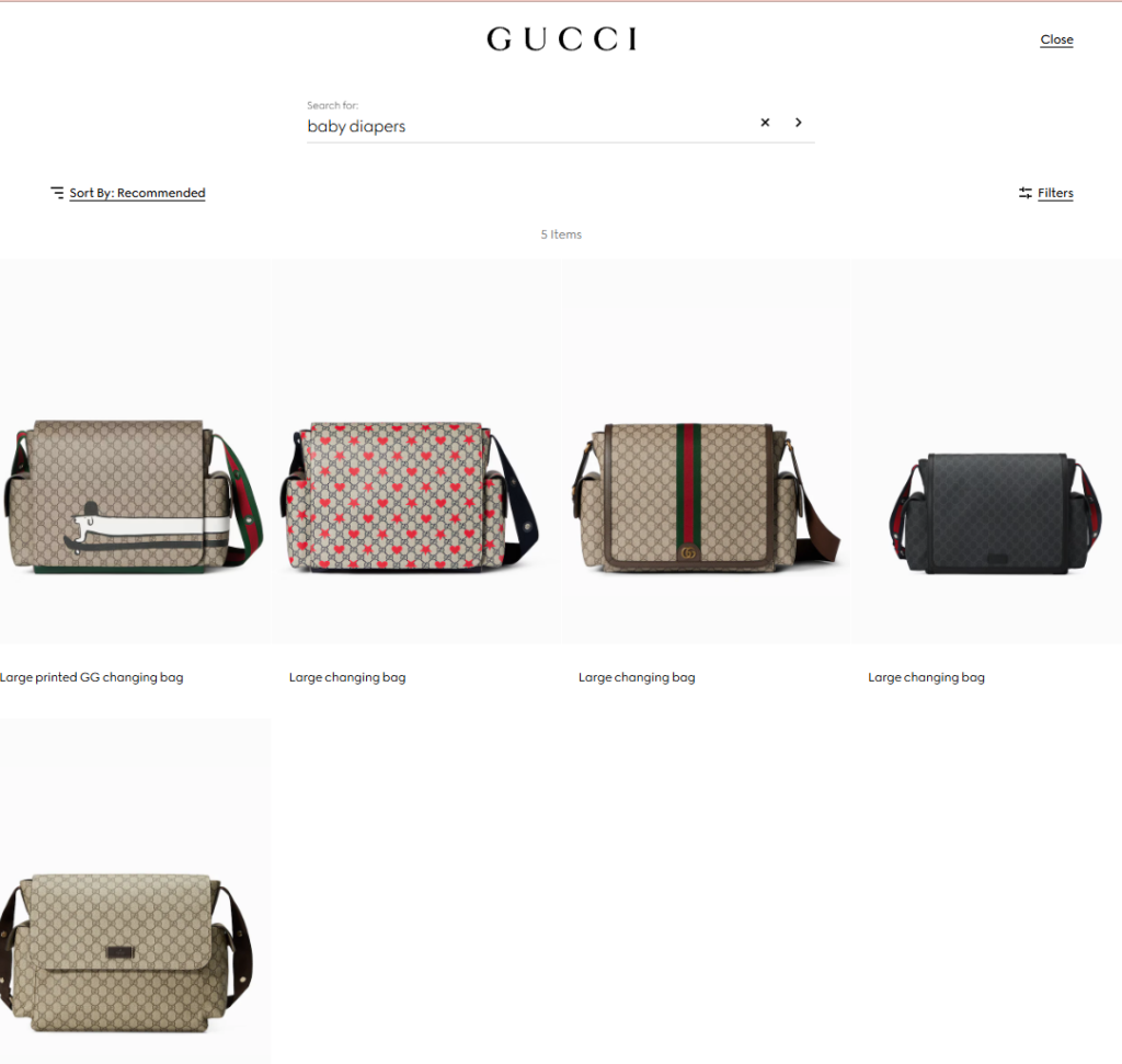 Nga ana tjetër, një kërkim në faqen zyrtare të Gucci për pelena fëmijësh nuk jep asnjë rezultat të tillë.