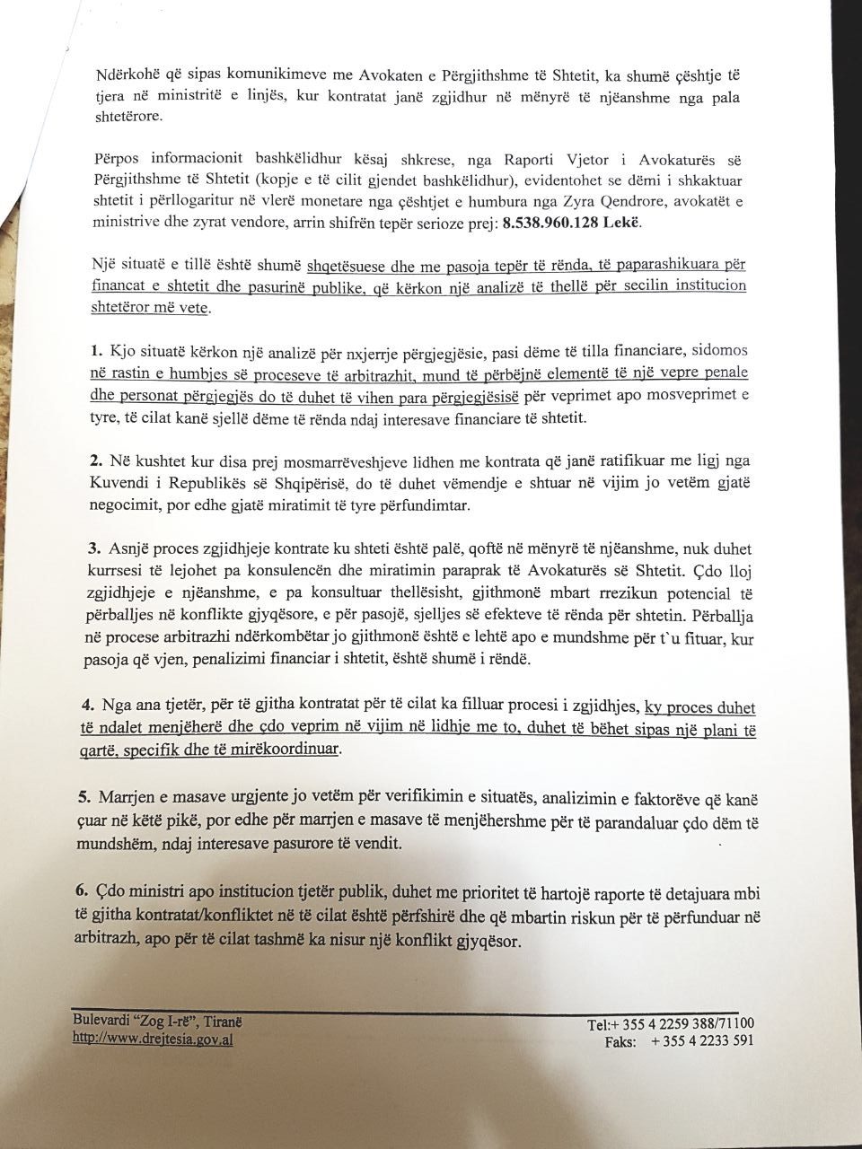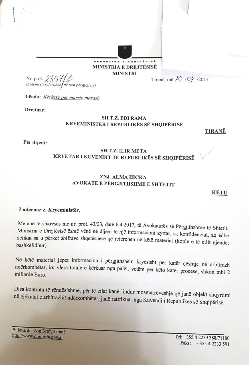 Në kohën kur ishte ministër i drejtësisë, Petrit Vasili, këtë informacion ia ka përcjellë edhe kryeministrit me një shkresë zyrtare, duke e vënë në dijeni për rrezikun me të cilin qeveria dhe buxheti i shtetit mund të përballen nga katër arbitrazhe të cilat sipas tij arrijnë shifrën e 2 miliardë eurove.