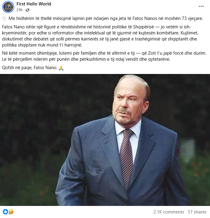 Çfarë është e sigurt është se, fatmirësisht, Nano nuk ka ndërruar jetë më 20 tetor 2025.
