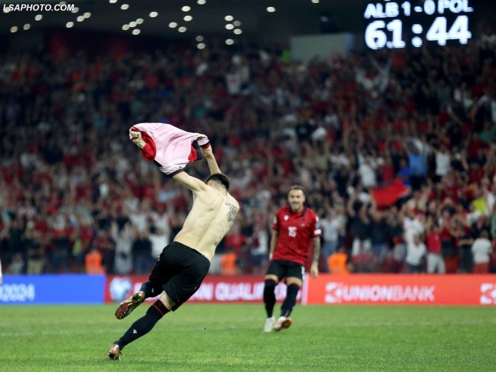Sulmuesi gjilanas e bëri gjestin festiv pasi shënoi golin e dytë për Kombëtaren Shqiptare ndaj Polonisë në stadiumin ‘Air Albania’, në ndeshjet eliminatore për Kampionatin Europian 2024.