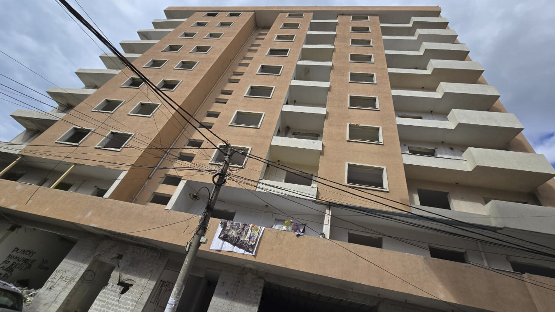 Në pallatet e tjera të lagjes, puna mbetet e bllokuar. Dy godina 10‑katëshe, fare pranë pallatit të rindërtuar, qëndrojnë si gërmadha, me çarje të dukshme në katet e para, të cilat janë mbushur me copa betoni, tullash e mbetjesh ndërtimi të grumbulluara që prej dëmeve të tërmetit, si edhe me lloj‑lloj mbeturinash të hedhura nga qytetarët.