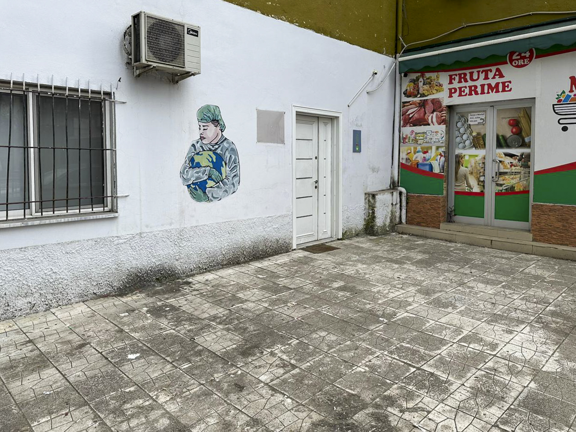 Në krah të derës hyrëse dallohet një murale që paraqet një punonjës shëndetësor që mban globin në krah. Kjo pikturë, së bashku me mbishkrimin “Si je? Kontrolli Shëndetësor Bazë 35-70 vjeç”, janë të vetmit tregues se objekti ka shërbyer si qendër shëndetësore.