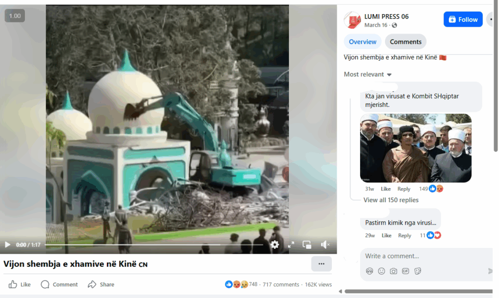 Pretendimi: Kjo video tregon shembjen e një xhamie në Kinë