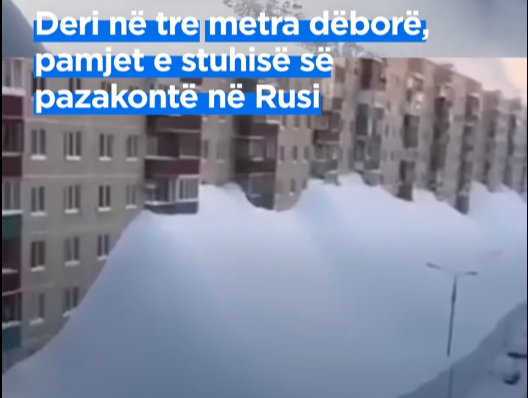 Një video që duket se tregon një grumbull gjigand bore që mbulon pjesën e poshtme të pallateve të banimit po qarkullon në media dhe rrjete sociale me pretendimin se ajo tregon borën që ka rënë në Kamchatka, Rusi në janar 2026.