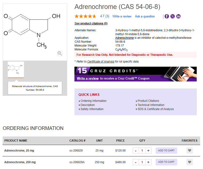 Sa i përket adrenokromit, kjo substancë prodhohet nga oksidimi i adrenalinës. Ajo është studiuar në vitet 1950-70, por sot nuk ka asnjë përdorim mjekësor. Administrata amerikane e Ushqimit dhe Barnave (FDA) nuk e ka aprovuar përdorimin e adrenokromit. Mbi të gjitha, nëse një kabal elitash do ta donte gjithsesi këtë substancë të deklaruar të padobishme nga shkenca, nuk do t’i duhej të rrëmbenin fëmijë nëpër tunele nëntokësore për ta përftuar atë. Adrenokromi mund të krijohet në laborator, madje mund të blihet në internet lehtësisht.