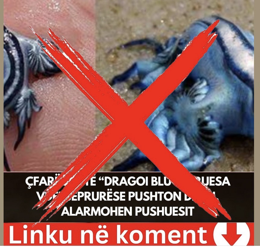 Në brigjet e Costa Blanca, një rajon në juglindje të Spanjës, autoritetet kanë paralajmëruar pushuesit për praninë e një krijese të rrallë detare të quajtur “dragoi blu” ose Glaucus atlanticus. Siç mund të shihet faqet shqiptare kanë marrë foton e postuar nga policia e shtetit spanjoll dhe e kanë përkthyer nga spanjishtja pa përcaktuar se ku me të vërtetë ndodhet rreziku.