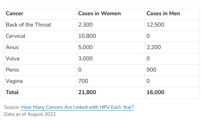 Sipas Qendrës amerikane për Kontrollin e Sëmundjeve (CDC), rreth 4 nga çdo 10 raste të kancerit të shkaktuar nga HPV ndodhin tek burrat. Çdo vit në Shtetet e Bashkuara, rreth 16,000 burra sëmuren nga kanceri i shkaktuar nga HPV.