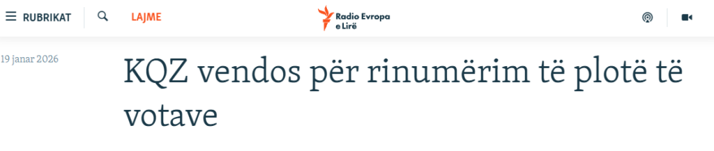 Artikulli që referohet në komente përmban tekstin identik të një artikulli të Radio Evropa e Lirë me titull: “KQZ vendos për rinumërim të plotë të votave.” Sipas tij, Komisioni Qendror i Zgjedhjeve i Kosovës ka vendosur që do të ketë rinumërim të plotë të të gjitha votave në 28 komuna për këto zgjedhje.